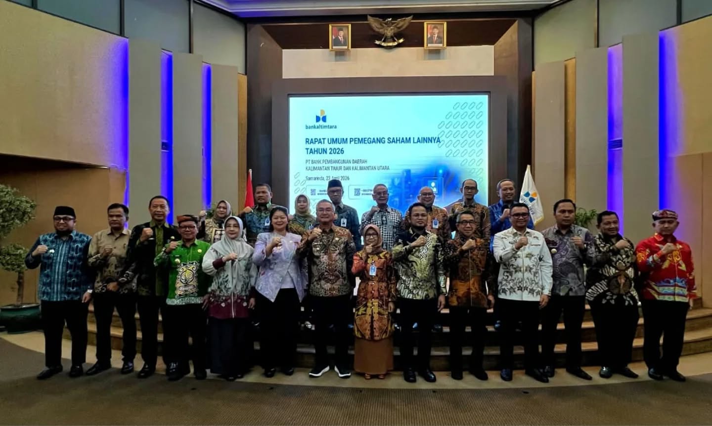 Samarinda – Bupati Malinau Wempi W Mawa, S.E., M.H., menghadiri Rapat Umum Pemegang Saham (RUPS) Lainnya PT BPD Kaltim Kaltara Tahun 2026 yang digelar di kantor pusat perusahaan di Samarinda, Kamis (23/4/2026). Kehadiran Bupati Malinau sebagai salah satu pemegang saham mewakili pemerintah daerah menegaskan komitmen daerah dalam mendukung penguatan sektor perbankan regional.