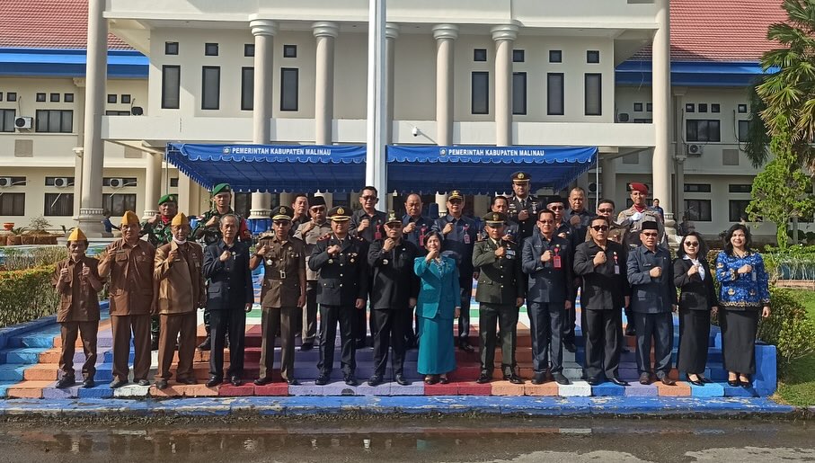 Malinau, 11 November 2024 – Pjs Bupati Malinau, Pollymaart Sijabat, S.KM., M.AP memimpin upacara peringatan Hari Pahlawan di halaman Kantor Bupati Malinau, Senin (11/11/2024). Upacara yang berlangsung hikmat tersebut dihadiri oleh seluruh jajaran Forkopimda, pejabat di lingkungan Pemkab Malinau, tokoh masyarakat, serta pelajar dari berbagai sekolah di Kabupaten Malinau.
